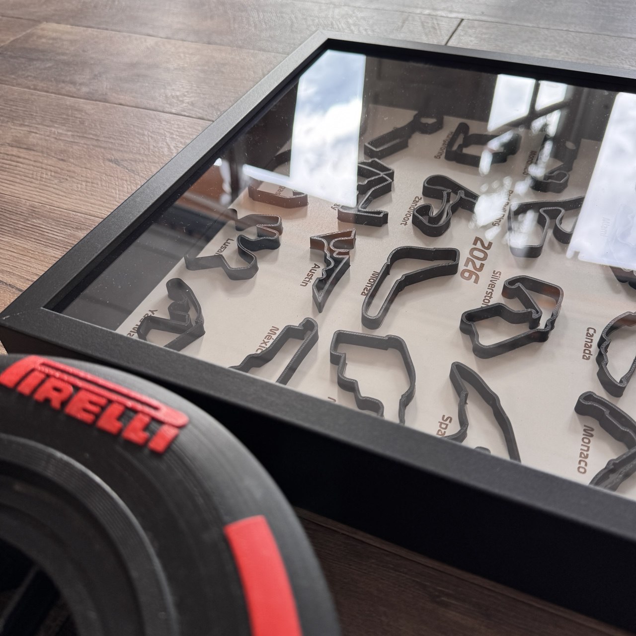 Este cuadro reúne el diseño detallado de los 24 circuitos que conforman la temporada 2026 de Fórmula 1. Ya sea para exhibir en tu oficina, sala de estar o estudio, este cuadro es el regalo perfecto para fanáticos de la Fórmula 1, un artículo que combina diseño y funcionalidad.