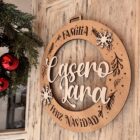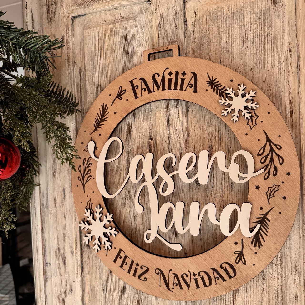 Madera de haya de 5mm de grosor, con adornos en madera blanca y 2 tipos de letra a elegir.