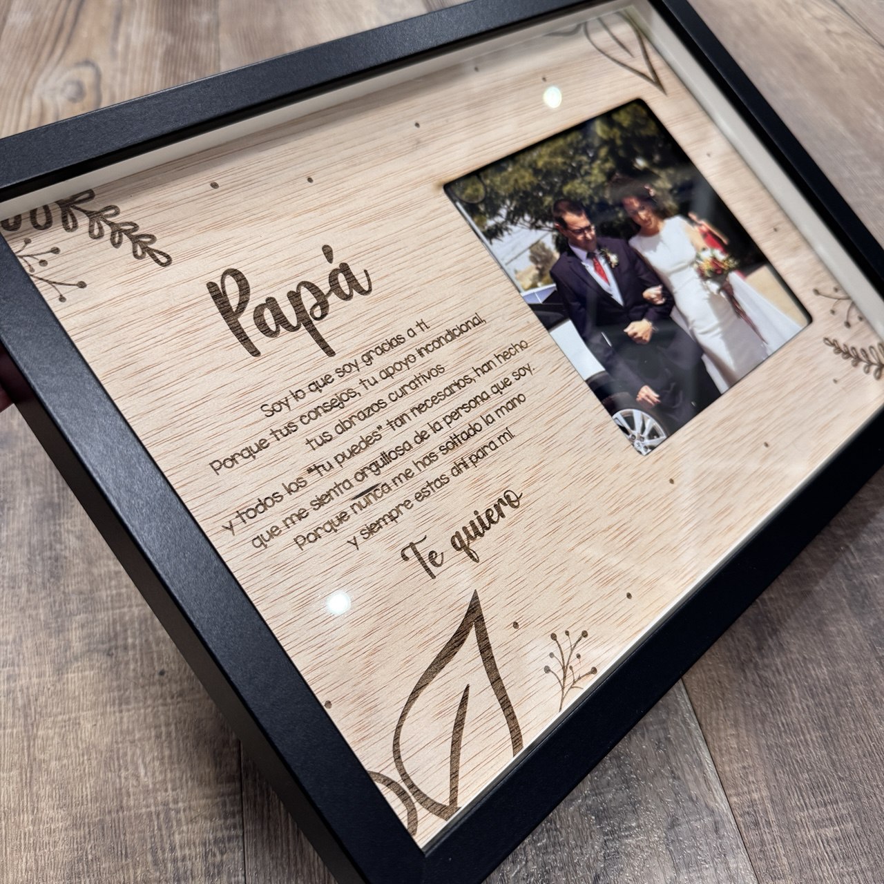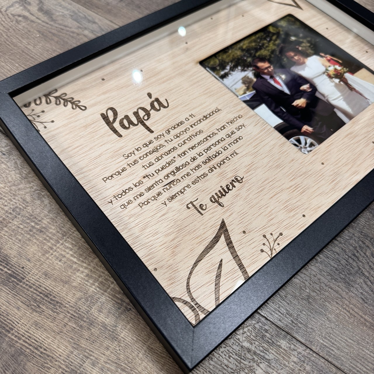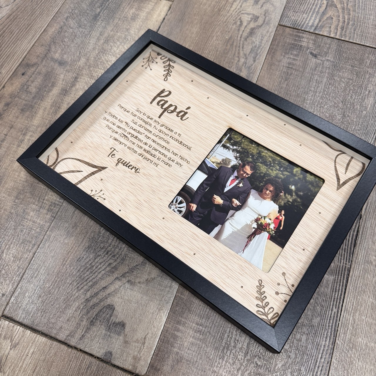 Marco de madera de 21×30 cms, con madera de haya interior personalizada con mucho mimo. Te llega preparado para que le pongas la foto que más te guste una vez te llegue.